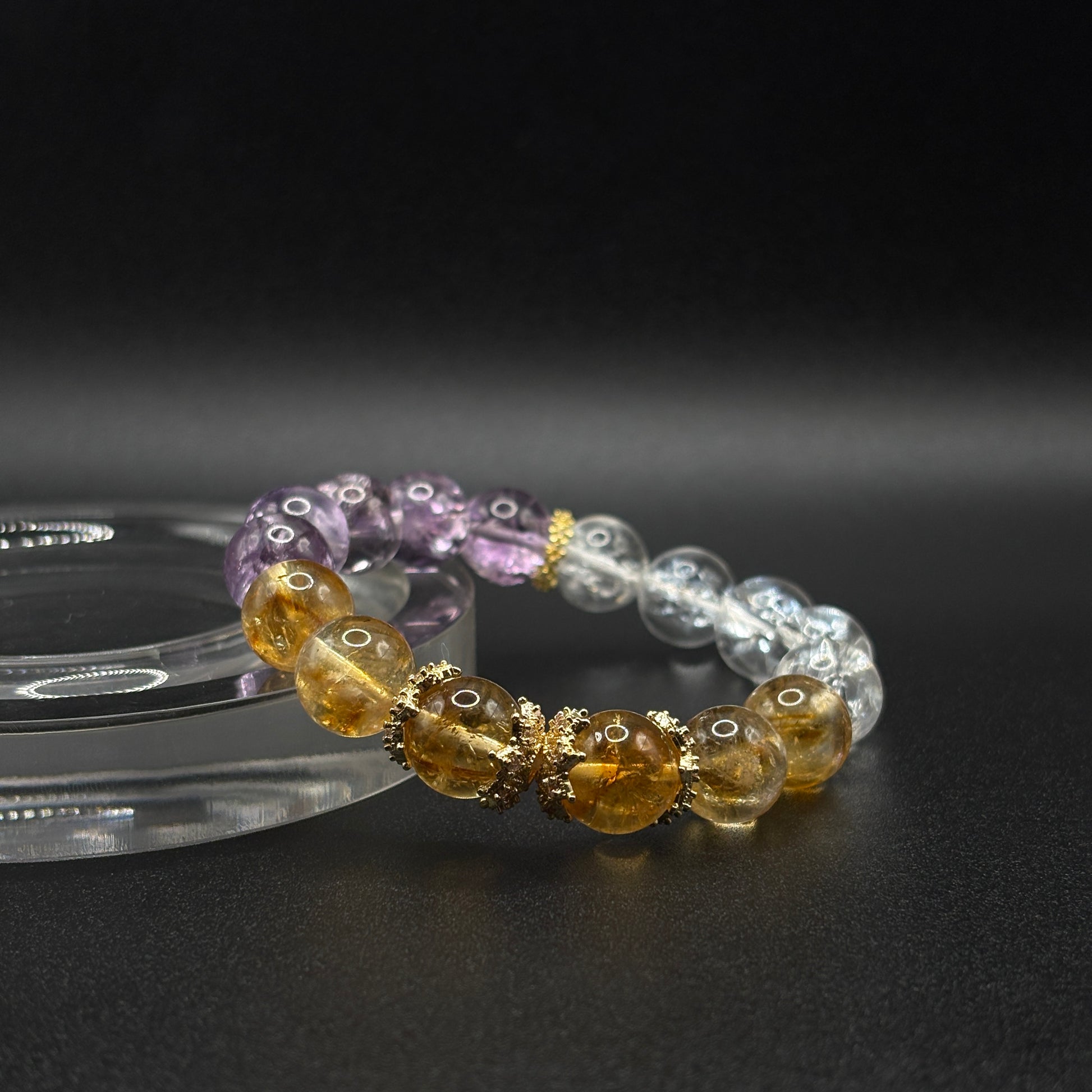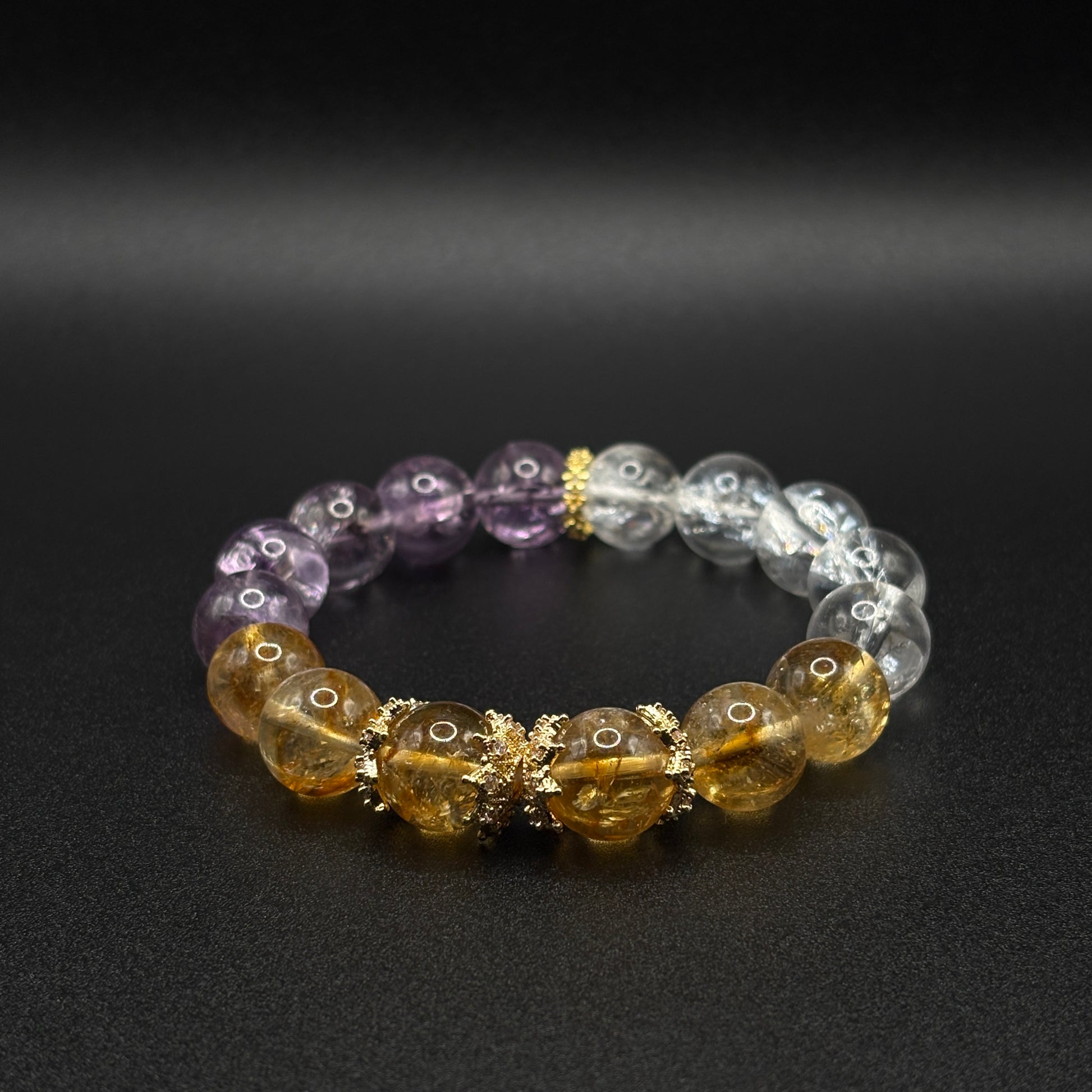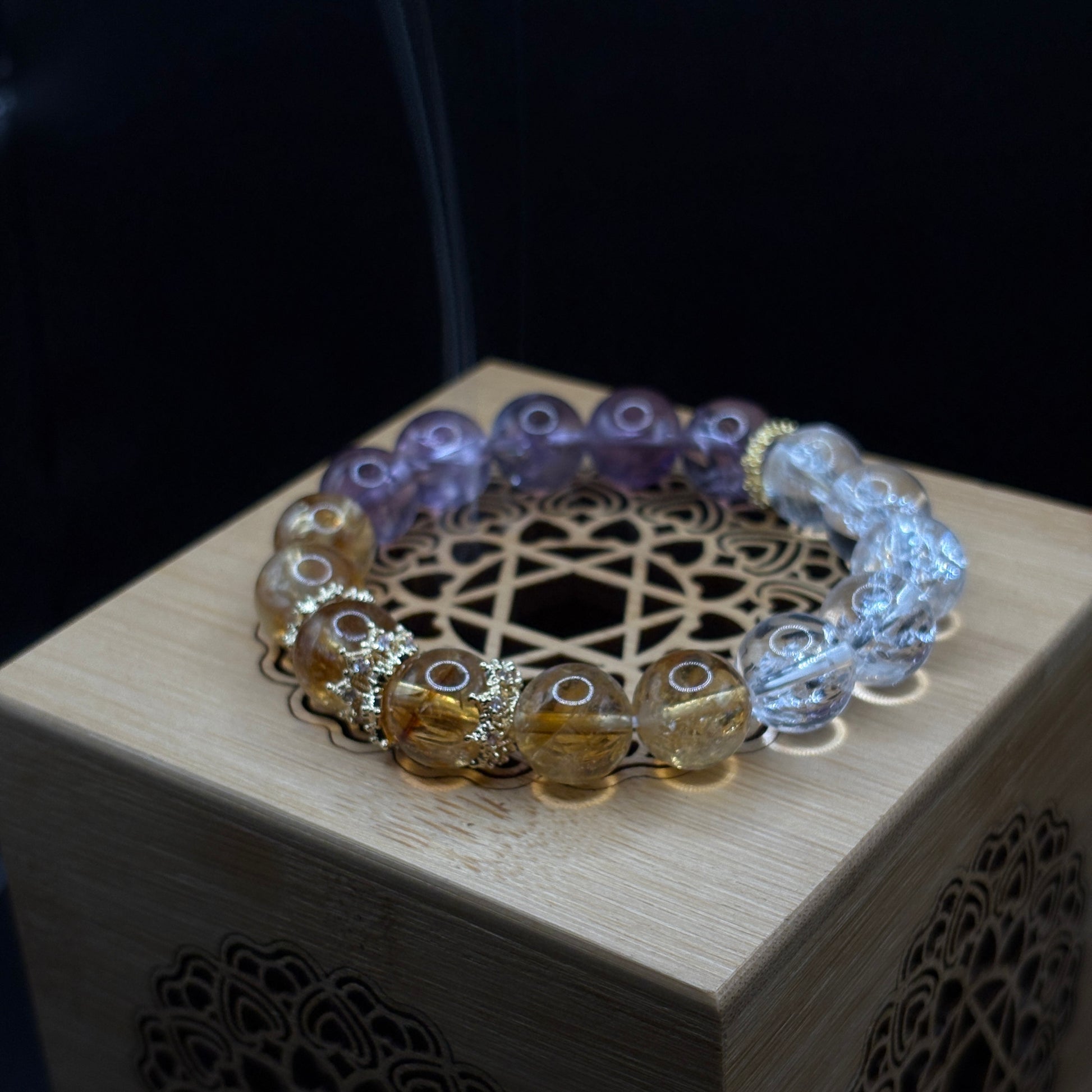Golden Rutilated Quartz × Amethyst Azeztulite × Himalayan Quartz | Abundance & Awakening Bracelet