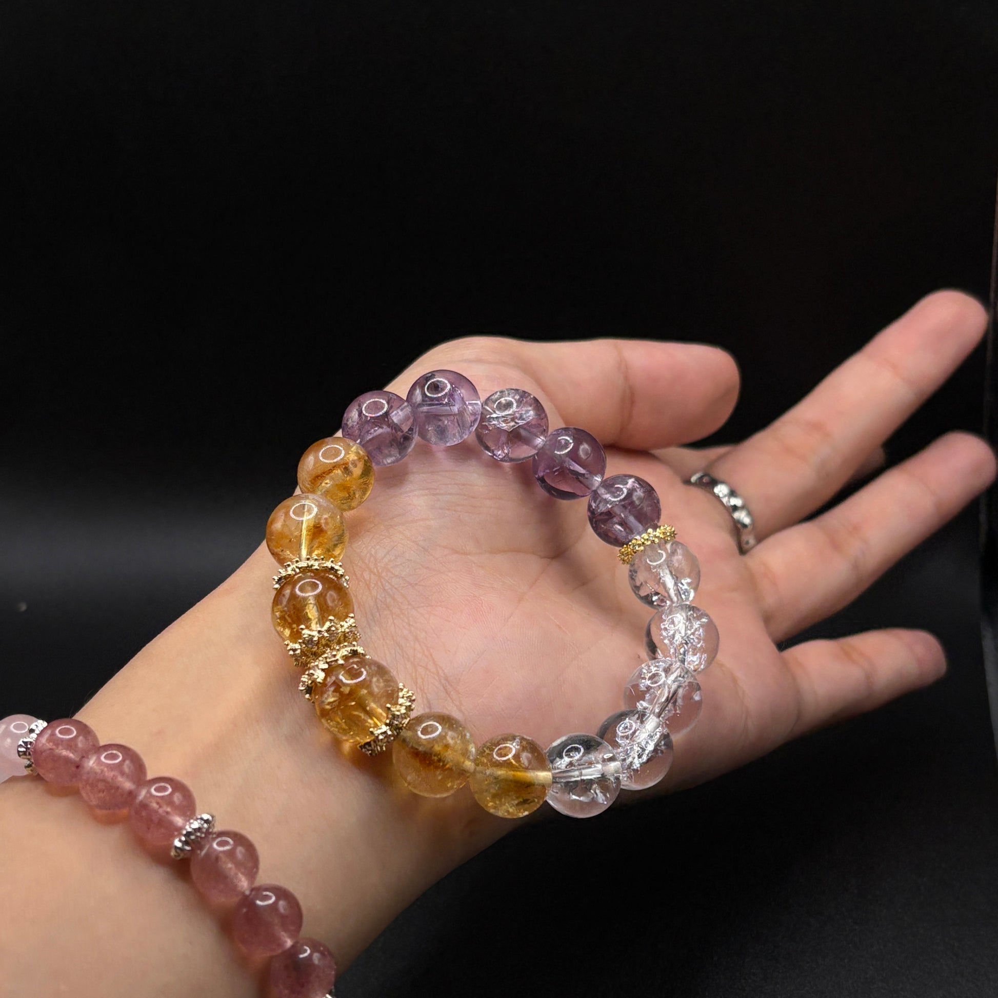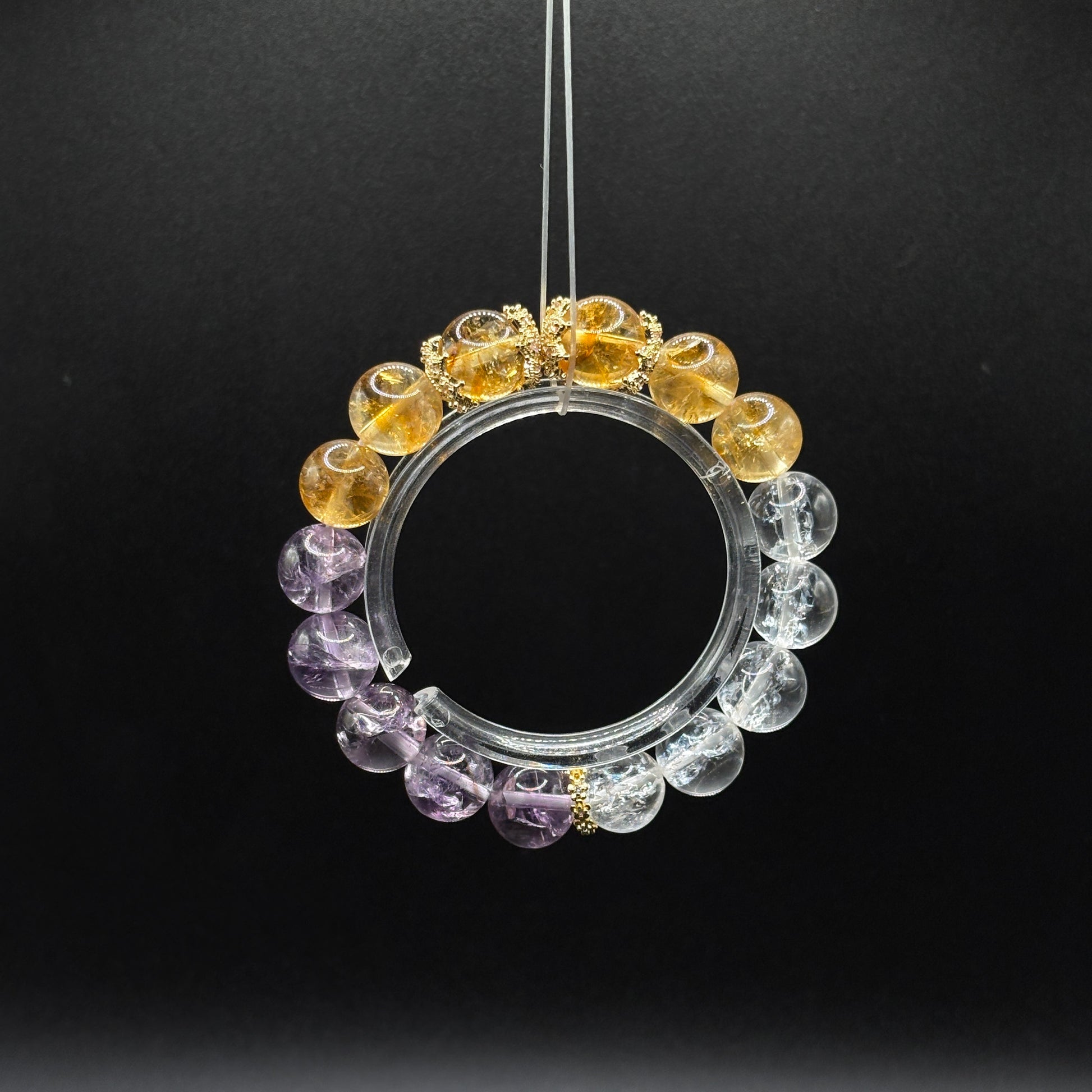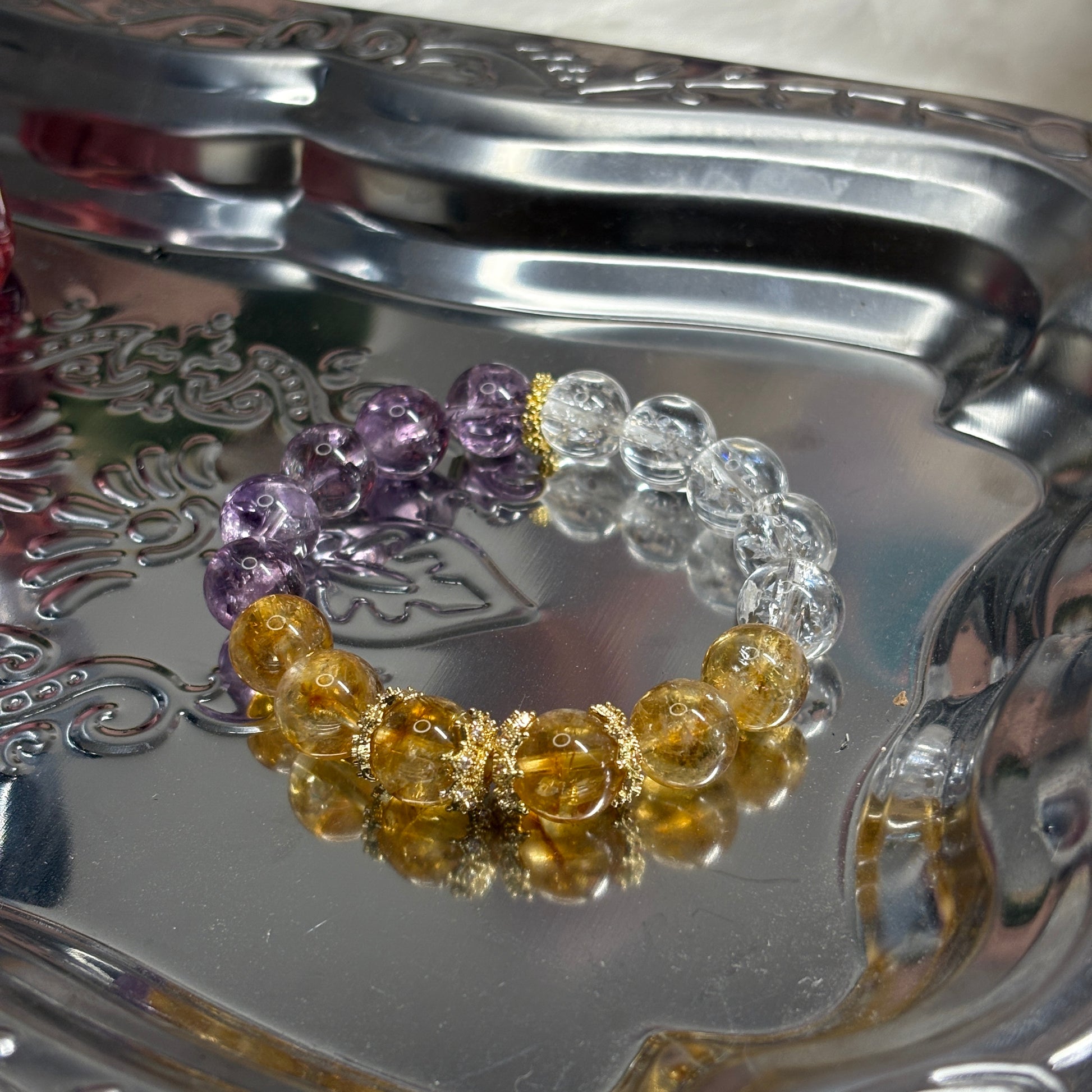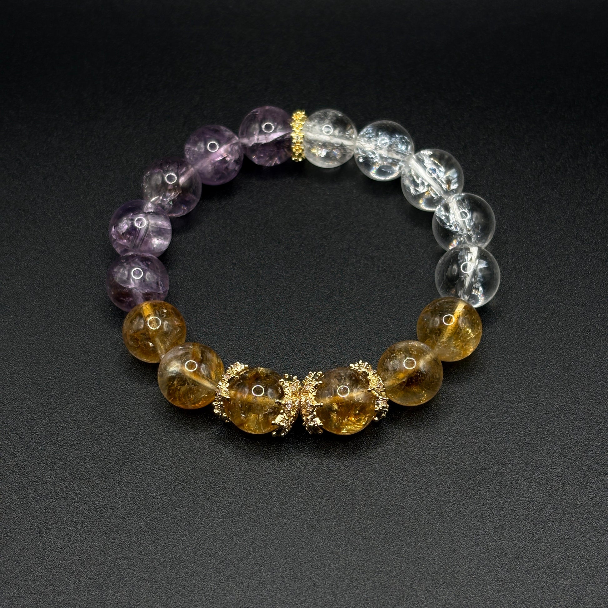 Golden Rutilated Quartz × Amethyst Azeztulite × Himalayan Quartz | Abundance & Awakening Bracelet
