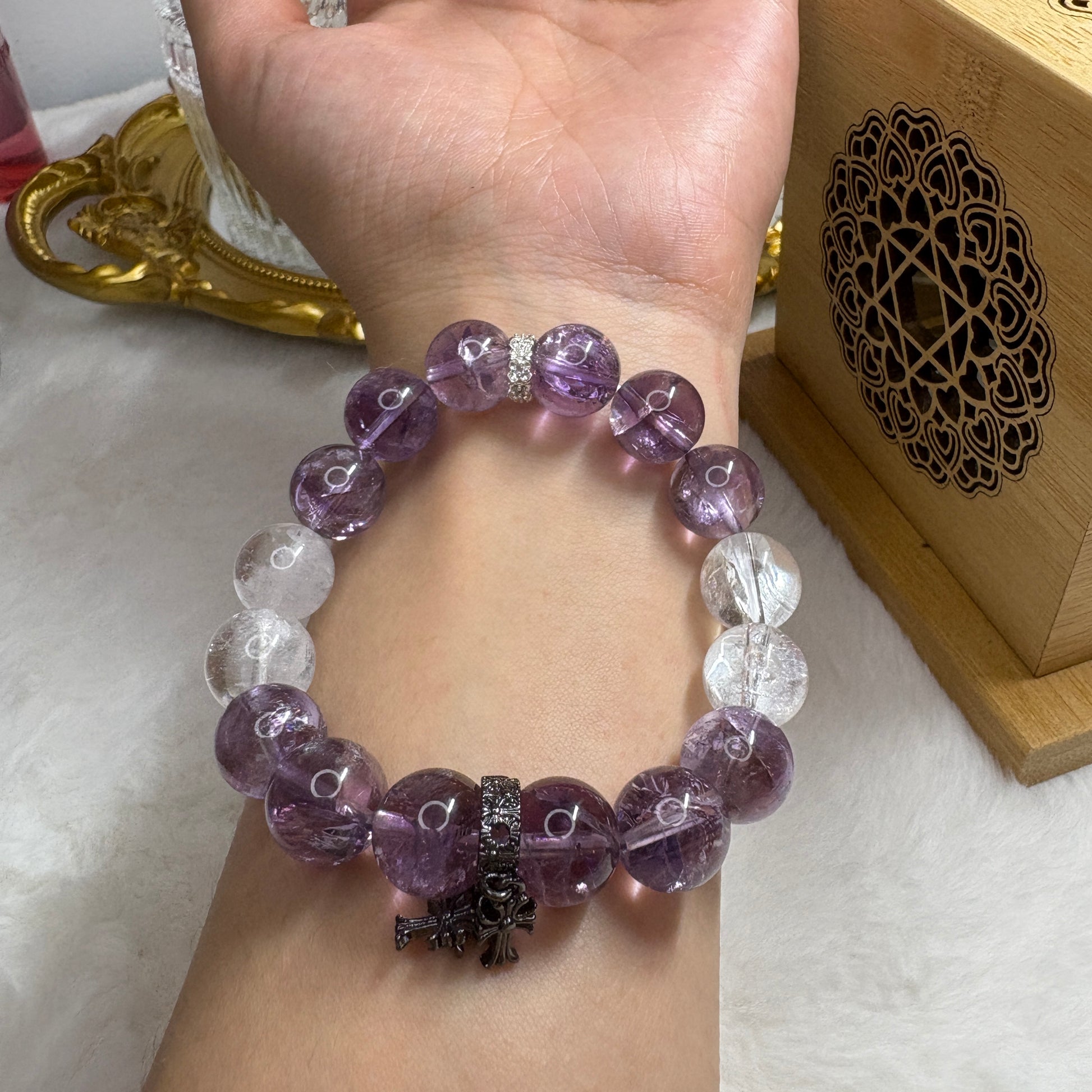 Amethyst Azeztulite × Clear Azeztulite | Emotional Healing Bracelet