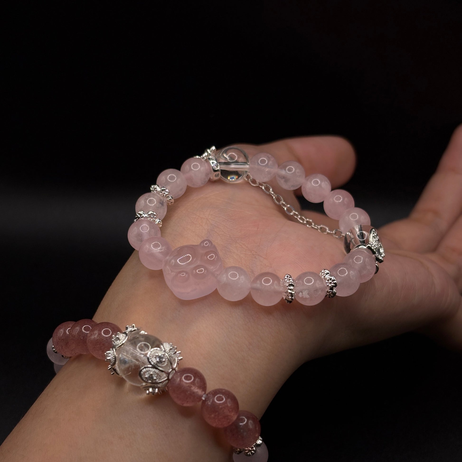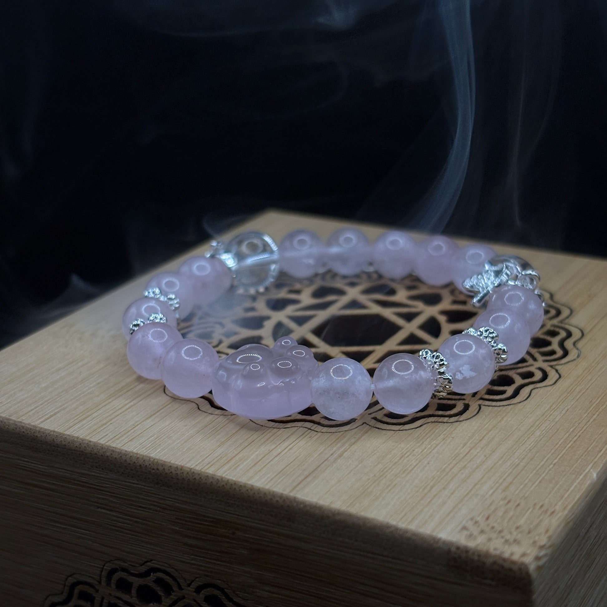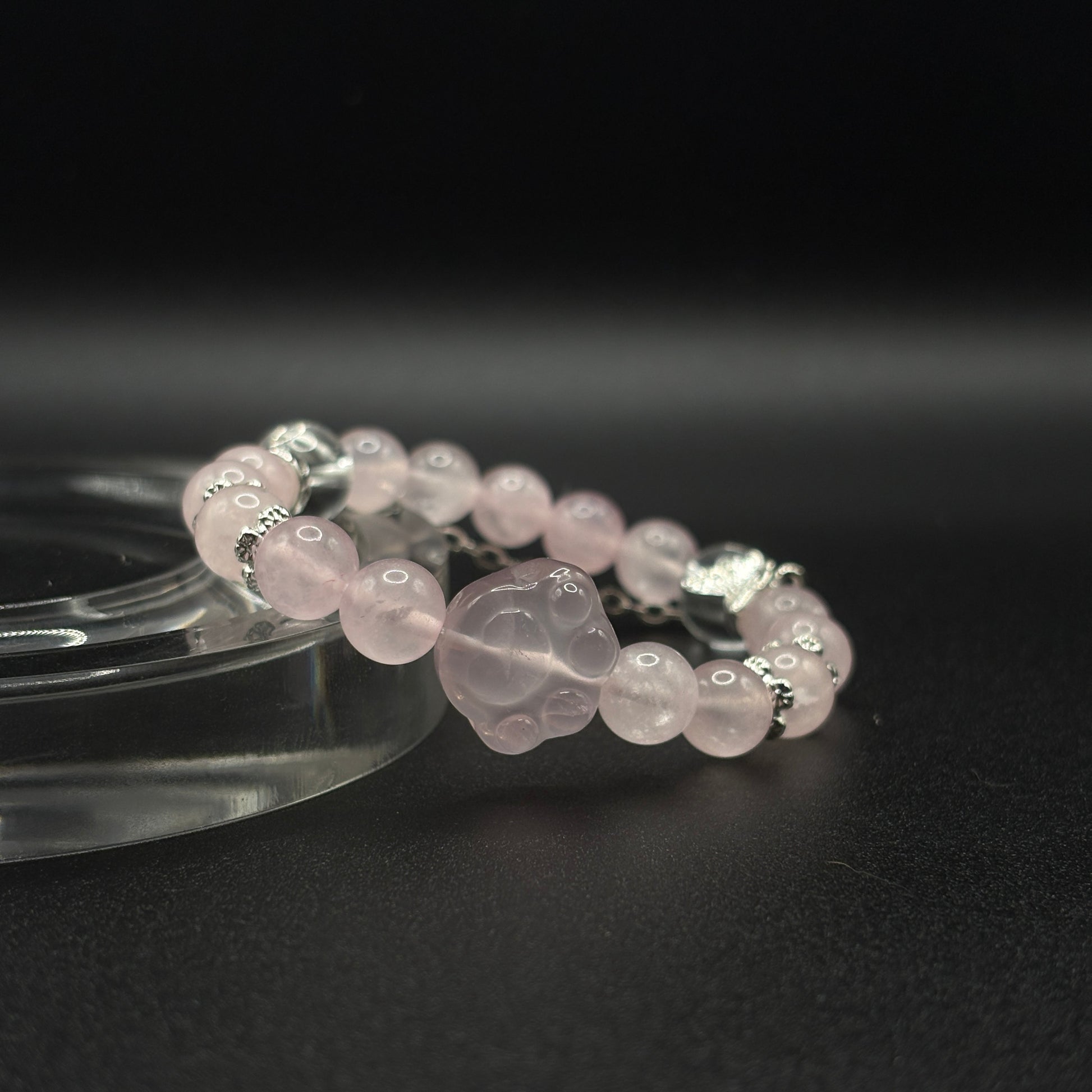 - Centerpiece: Hand-carved Rose Quartz Cat Paw charm