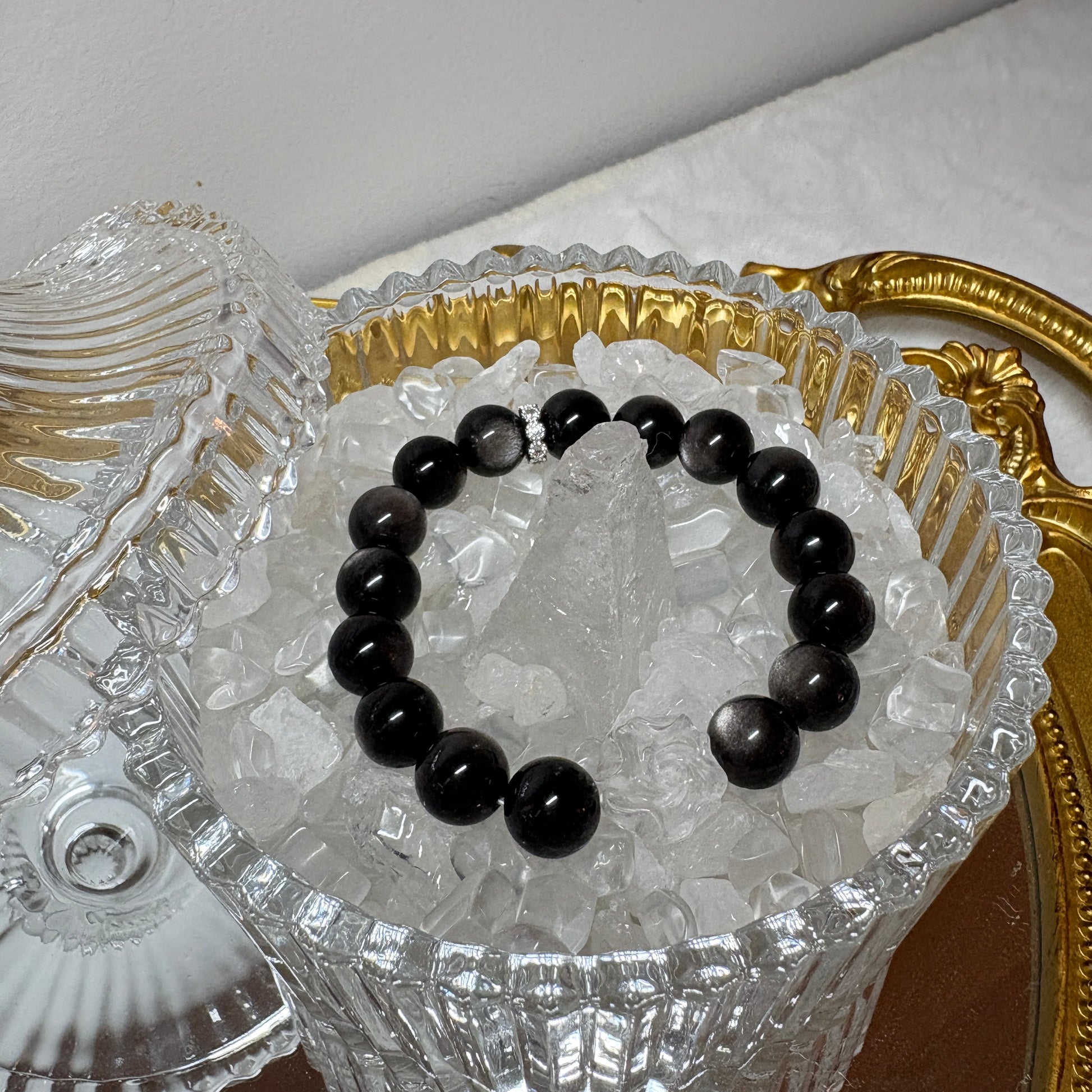 - Silver Obsidian: 10mm (natural, dark volcanic glass with silver sheen)