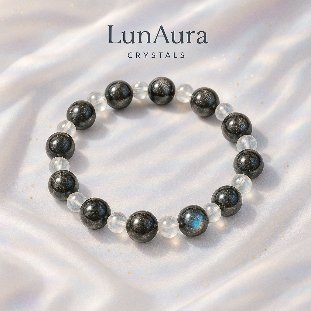 A luminous fusion of silver sheen protection and moonstone intuition—designed to help you release negativity, stay centered, and move through life’s transitions with grace.