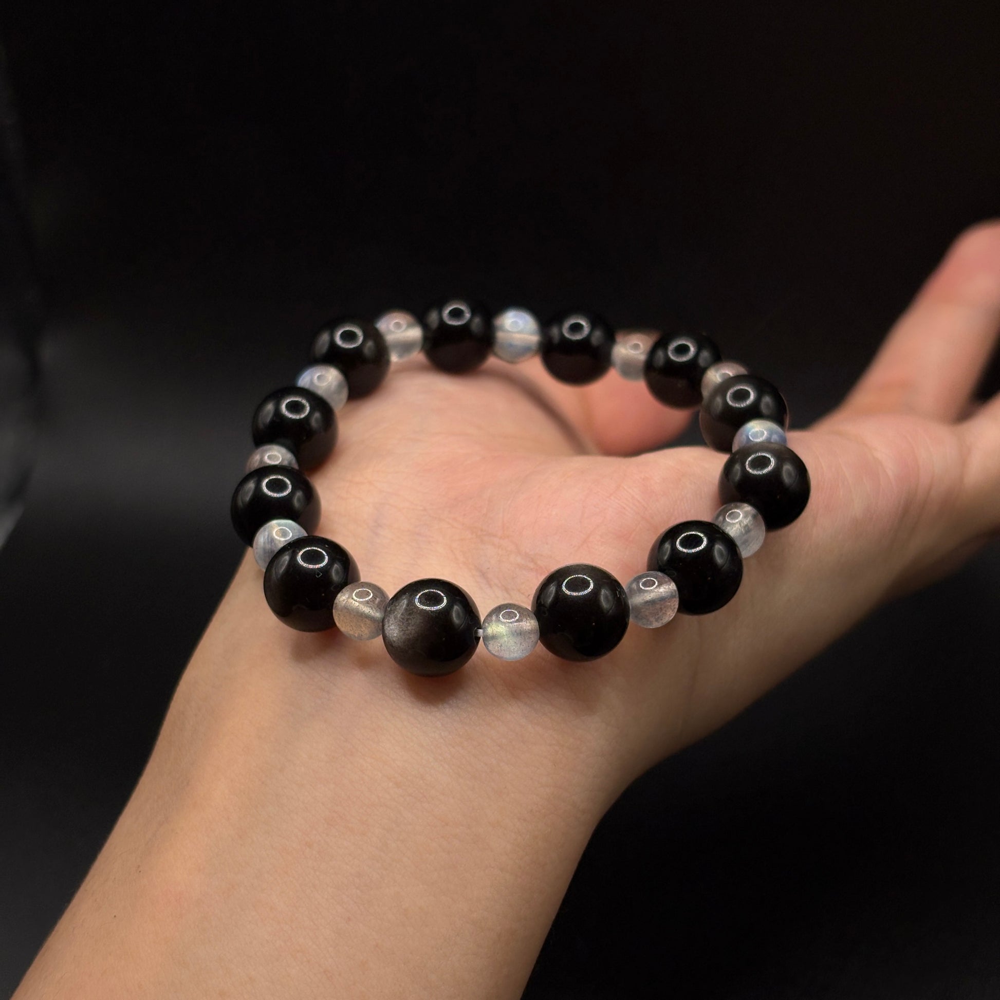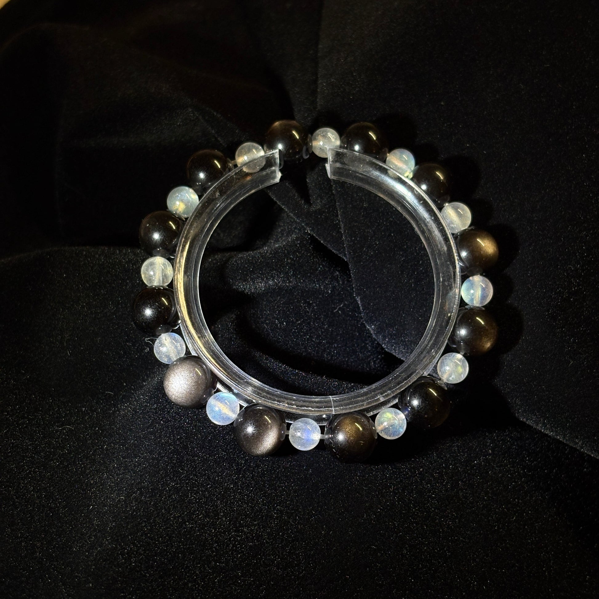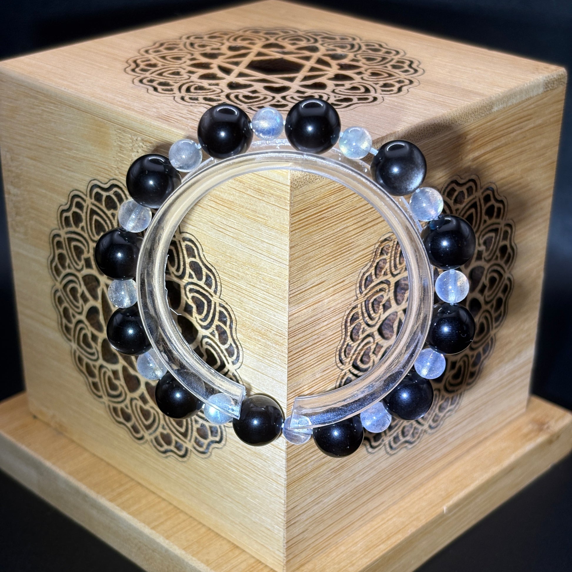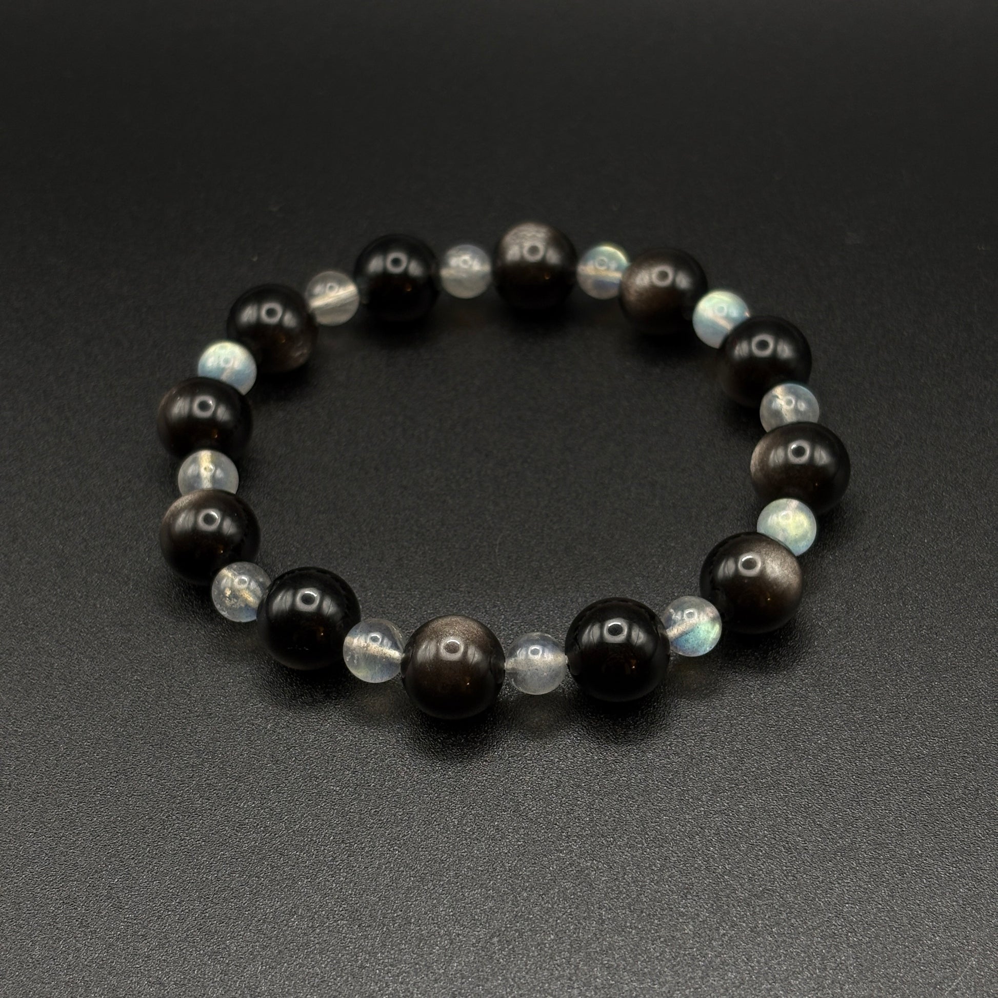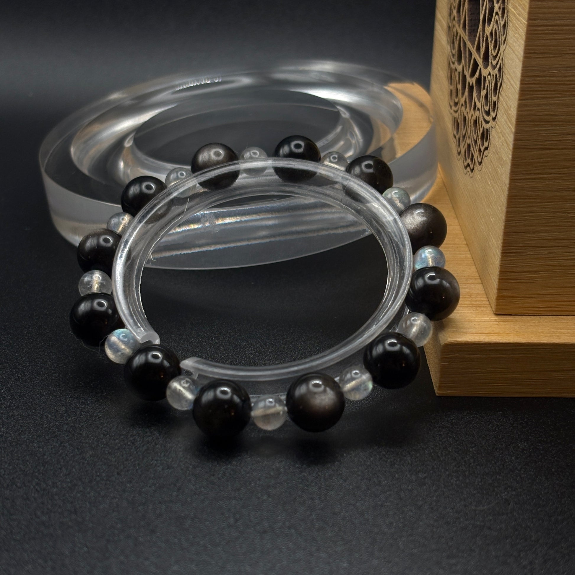 Silver Obsidian × Gray Moonstone | Clarity & Balance Bracelet