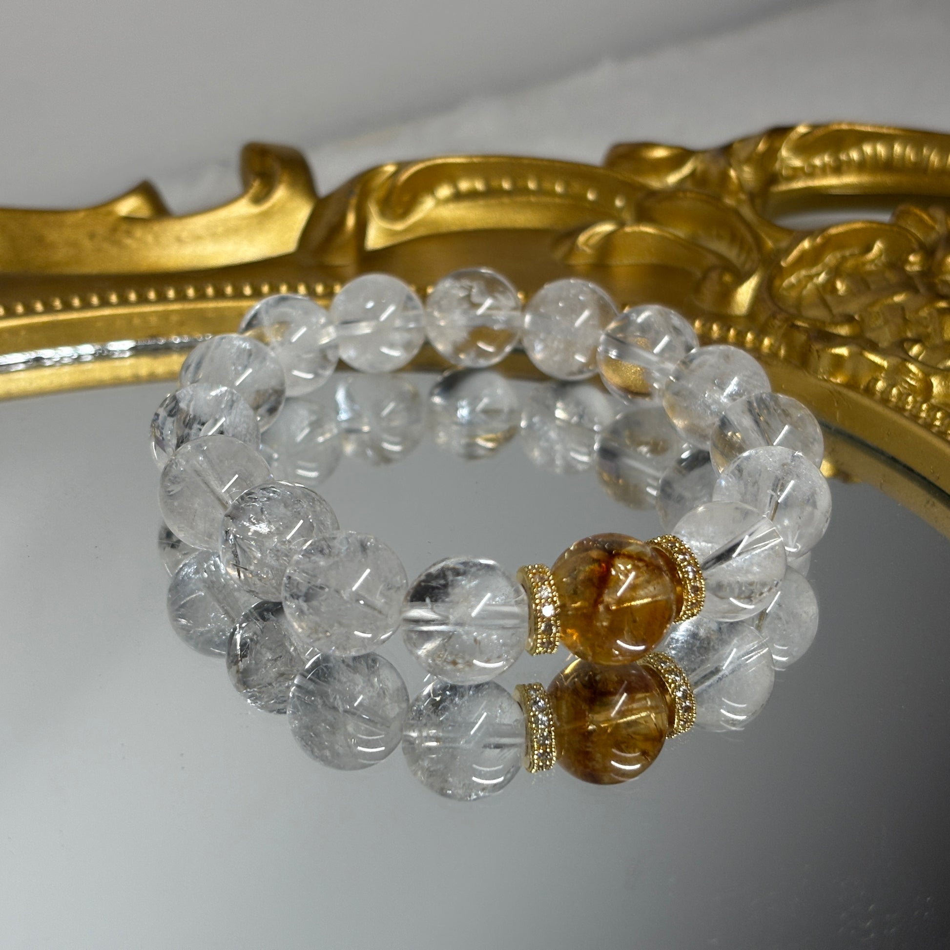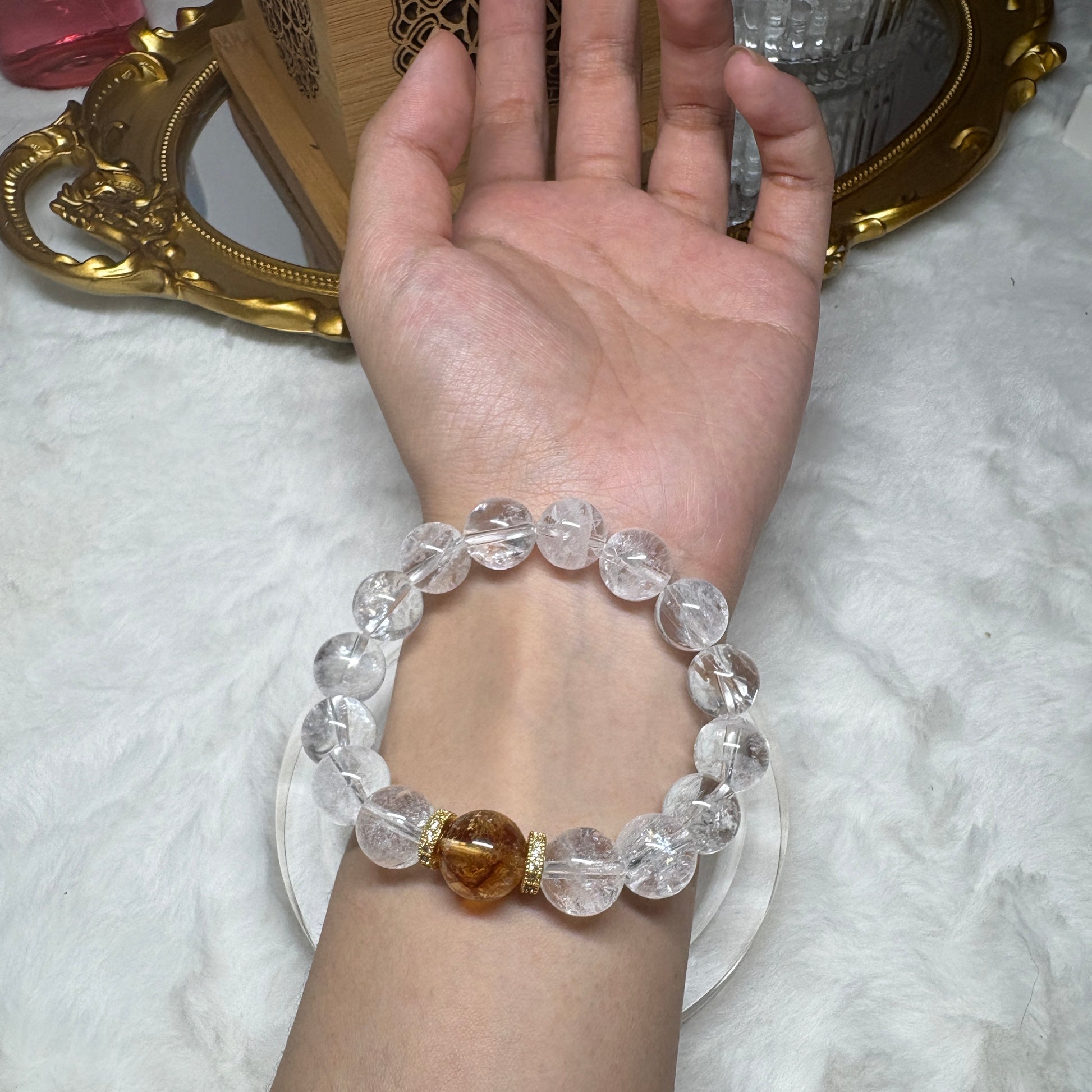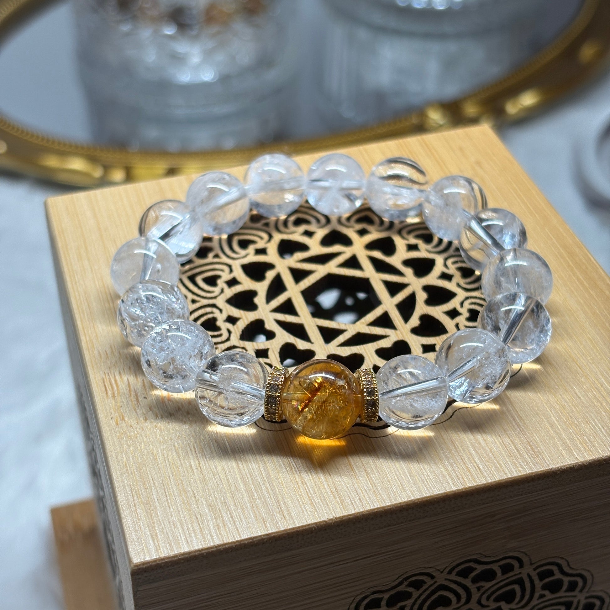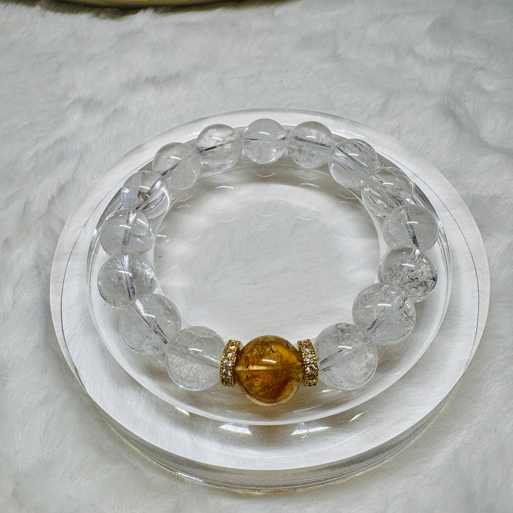 White Azeztulite × Golden Rutilated Quartz | Soul Light & Success Bracelet